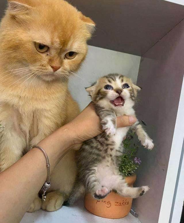 2、母貓把幼崽叼給主人,或許是因為自己不會照顧孩子,希望主人能幫忙。