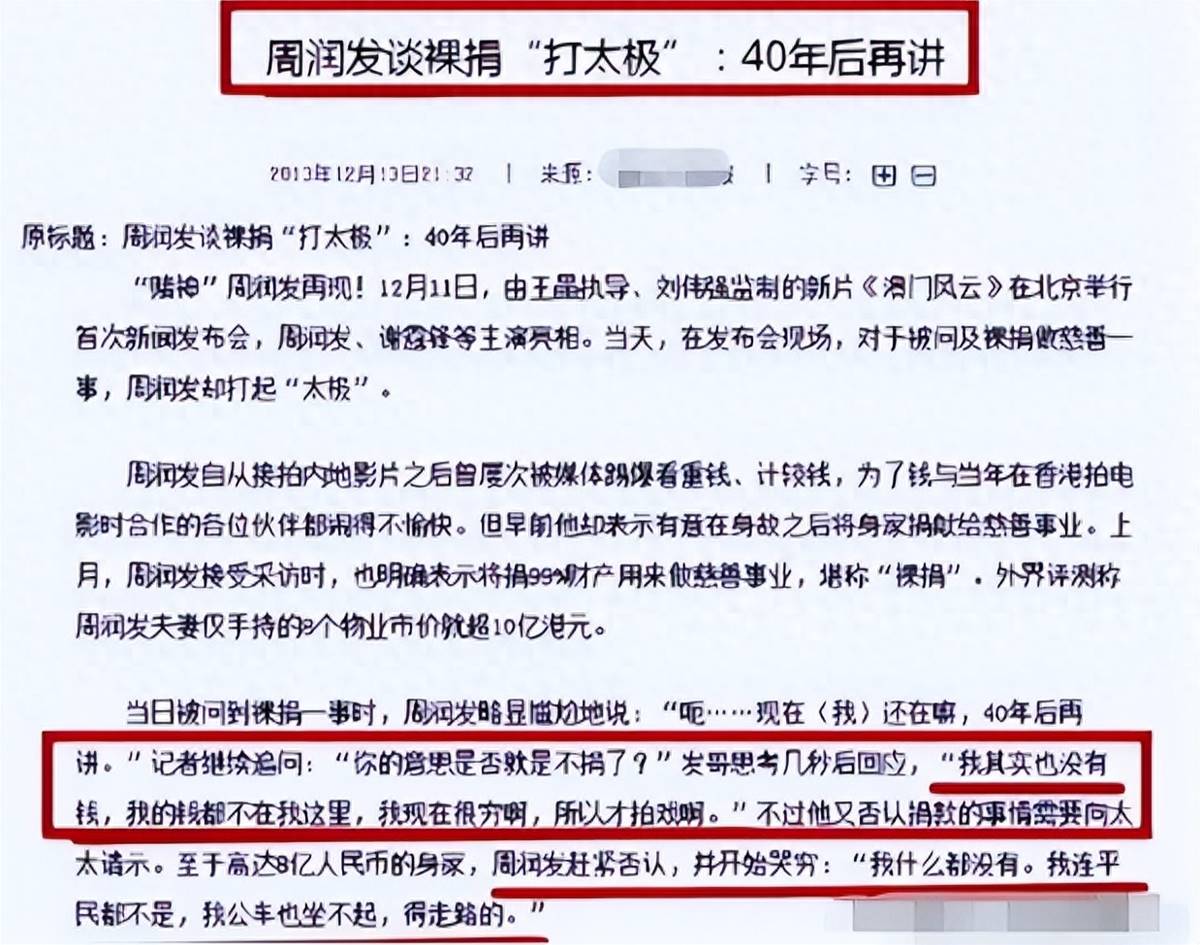電影《澳門風云》上映后,發布會上,記者提及捐款事宜,周潤發口無遮攔的說,四十年后再談捐贈吧。