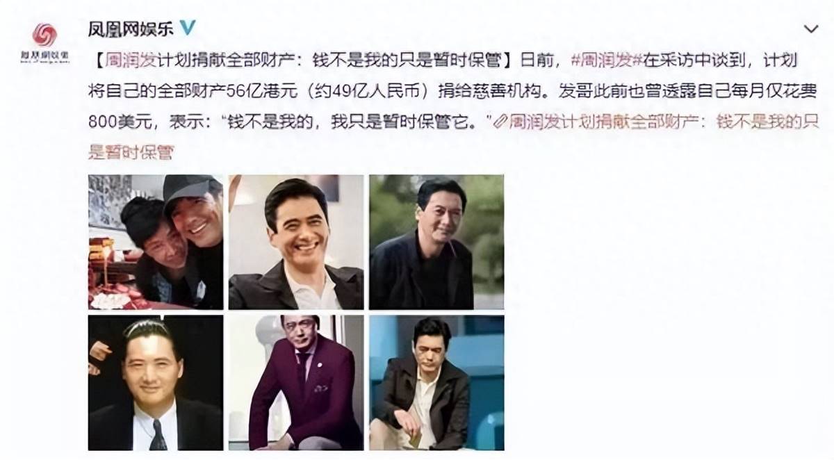 十多年前,比爾蓋茨稱自己去世之后將自己的財產全部捐獻給國家。周潤發效仿比爾蓋茨,表示自己沒有孩子,掙的錢花不完。會將自己的將近60億財產裸捐給國家,基本生活貧困的山區小朋友們。